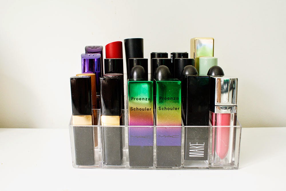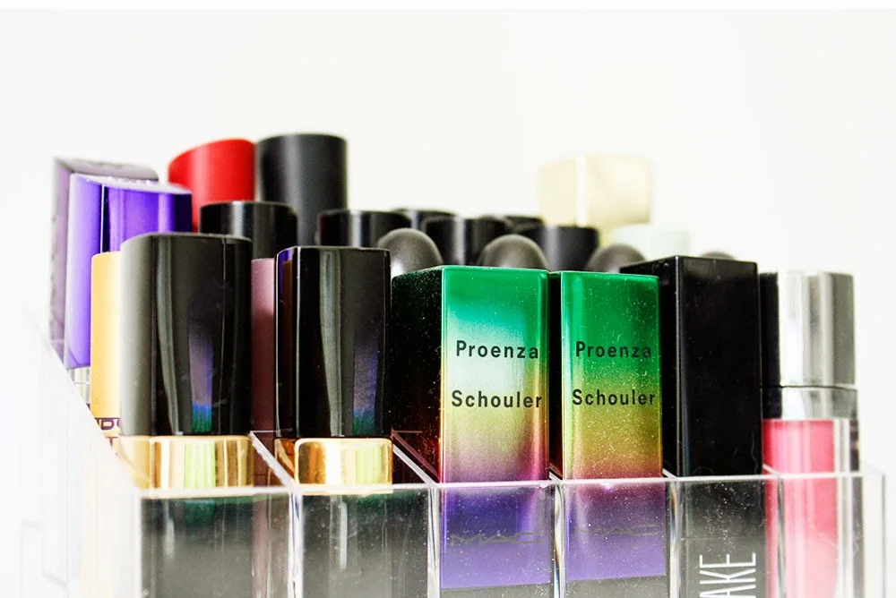 I have quite a few lip products and it was getting a little out of hand... I used to use the muji drawers for all my makeup but it was hard to keep the lipsticks in them so I have been storing them in this handy little acrylic organizer. It holds a total of 24 lipsticks and this is a great way to organize and display your lipsticks! I always have a hard time finding where I put my lipsticks so this has been such a great help. Now I can always find exactly the shade I'm looking for!